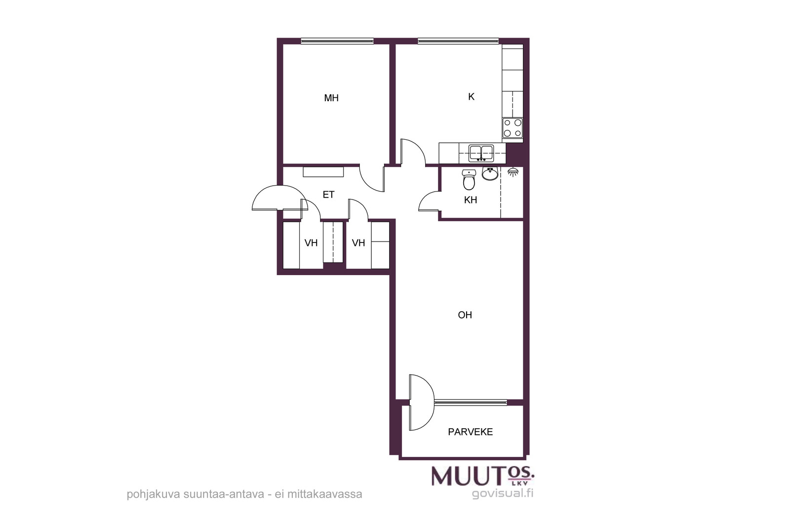 - Edellä mainittu pinta-ala saattaa tämän ikäisessä kohteessa poiketa olennaisestikin huoneiston nykyisen ja rakentamisaikaisen mittaustapojen ja standardien mukaan laskettavasta pinta-alasta. Huoneiston todellinen pinta-ala voi olla yhtiöjärjestyksessä, isännöitsijäntodistuksessa ja esitteessä mainittua pienempi tai suurempi. Hinta ei ole pinta-alaperusteinen. Yhtiöjärjestyksen mukainen huoneistoselitelmä: 2h+k+p