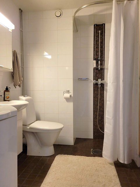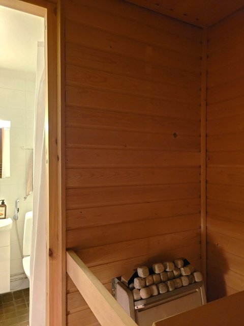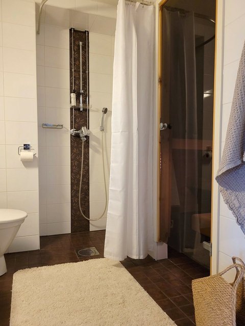 Kylpyhuone on saneerattu taloyhtiön LVIS-remontin yhteydessä vuonna 2016 – lopputuloksena moderni ja tyylikäs kokonaisuus kauniine yksityiskohtineen. Omaa arjen luksusta tarjoaa oma sauna, jossa on ihana rentoutua päivän päätteeksi.