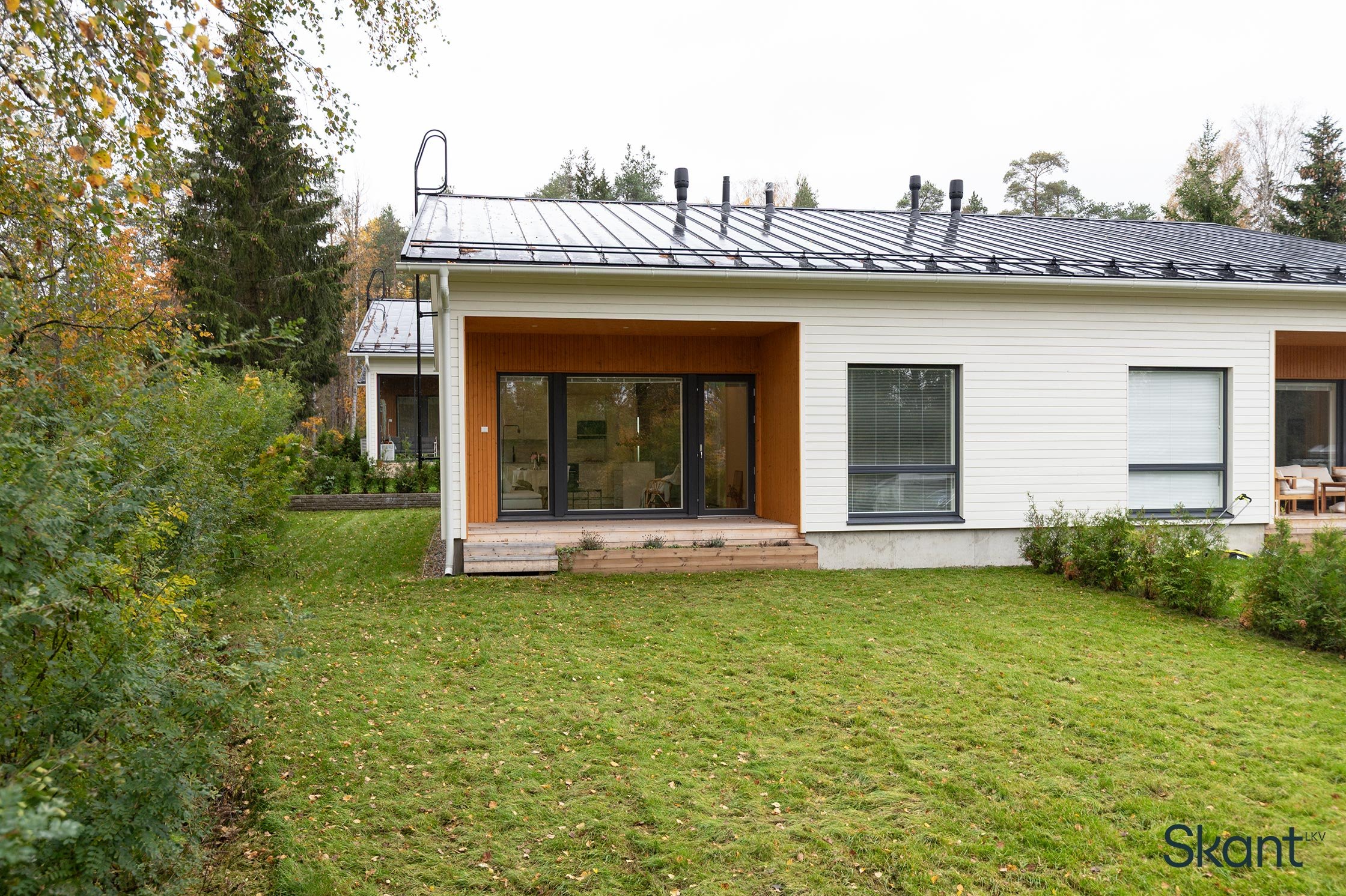 Tämän kodin toimiva pohjaratkaisu yhdessä suurten ikkunoiden kanssa luo mukavasti tilan tuntua ja tuo runsaasti luonnonvaloa sisään. Kolmen makuuhuoneen lisäksi talosta löytyy viihtyisä olohuone, josta on käynti katetulle terassille ja edelleen suojaisalle nurmipihalle. Pihaa kehystää istutusaita, joka luo viihtyisän ja yksityisen pihapiirin.