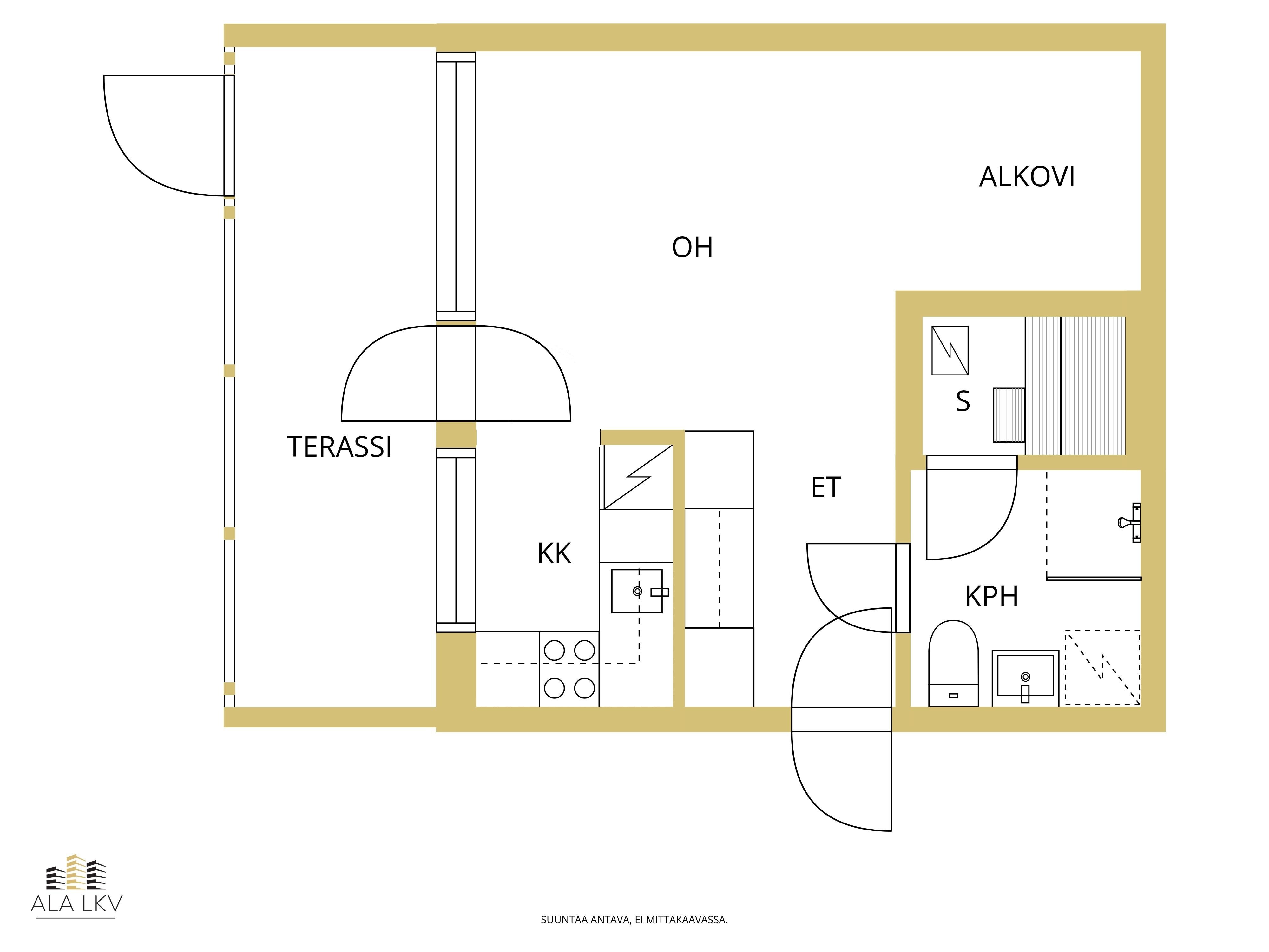 - Ei tarkistusmitattu. Pinta-alat saattavat tämän ikäisissä kohteissa (yhtiö rekisteröity ennen 01.01.1992) poiketa olennaisestikin asuinrakennusten nykyisten mittaustapojen ja standardien (SFS 5139) mukaan laskettavasta asuintilojen pinta-alasta. Pinta-ala voi siis olla edellä mainittua pienempi tai suurempi.