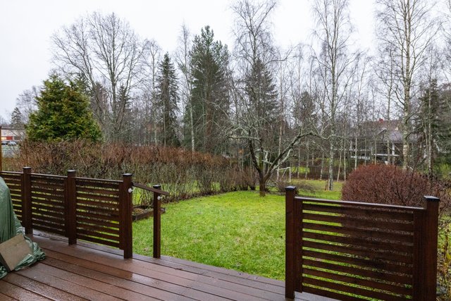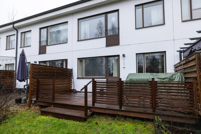 Takapihalla on istutuslaatikoita, marjapensaita ja omenapuu, jotka tarjoavat mahdollisuuksia puutarhanhoitoon ja omien hedelmien ja marjojen kasvattamiseen. Terassi ja takapiha on täydellinen paikka nauttia perheen yhteisistä kesäpäivistä.