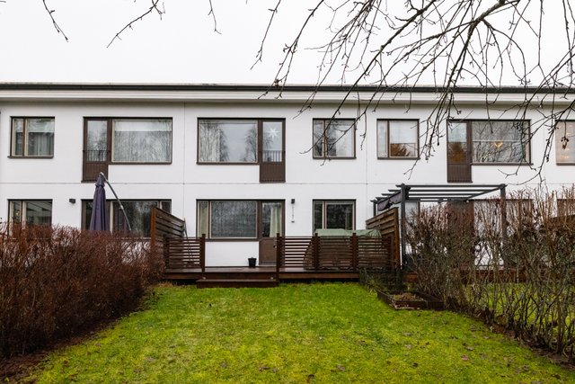 - Keittiö/oh, alakerran makuuhuoneet takapihalle/puistoalueelle. Yläkerran mh. etupihalle.