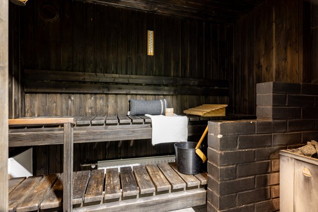 Sauna tarjoaa rentouttavat löylyt puukiukaalla, ja asunnon kaksi erillistä wc:tä tekee arjesta sujuvaa isommallekin perheelle.