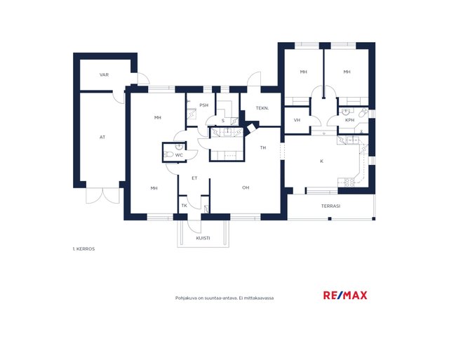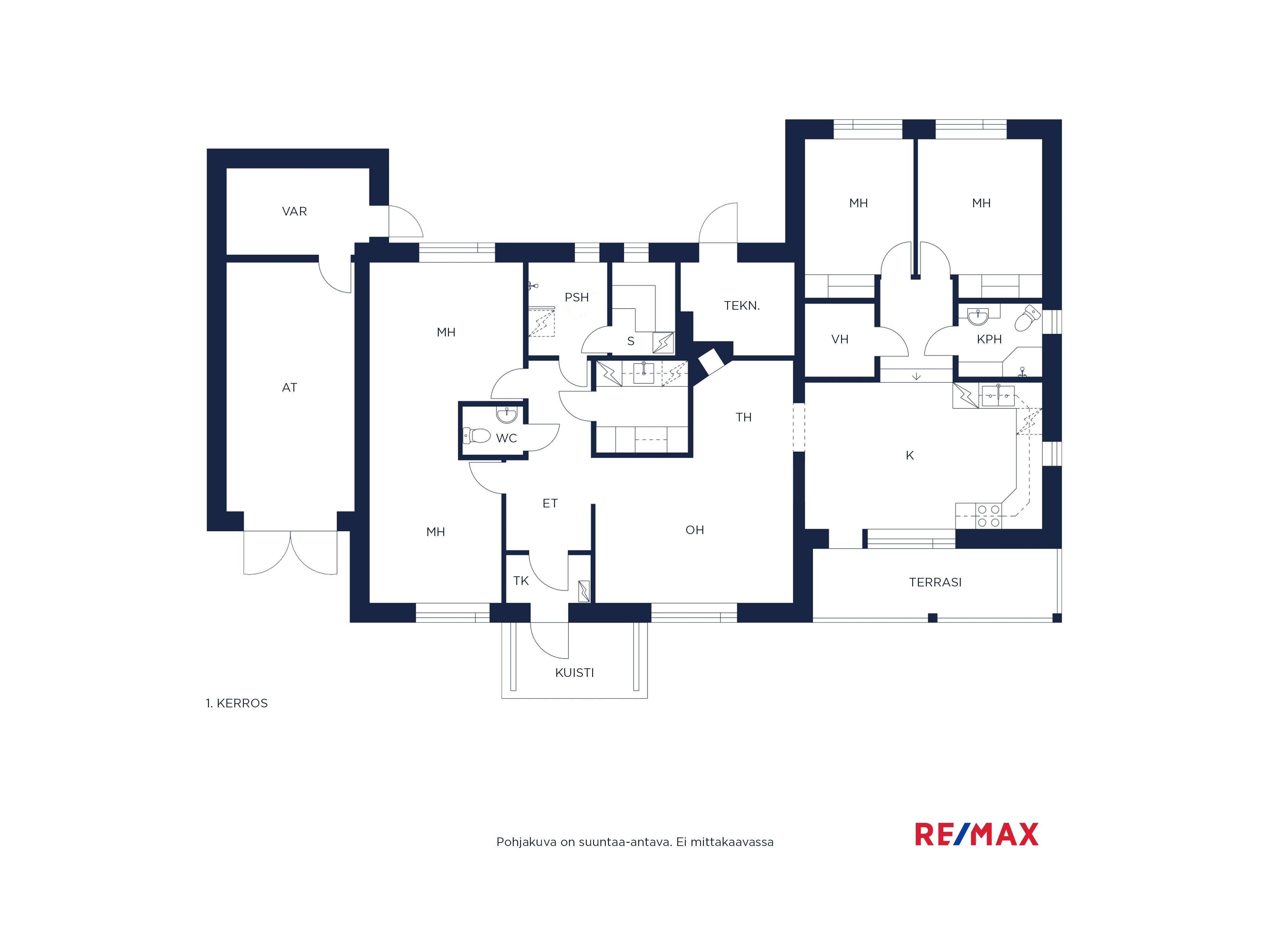 - Eteinen, takkahuonetila, keittiön viereinen aulatila, vaatehuone, vanha keittiö/varastotila, autotalli, jonka perässä kylmä varastotila.