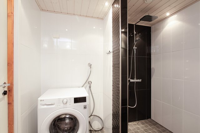 - Suihku, lattialämmitys (sähkötoiminen), ja pesukoneliitäntä