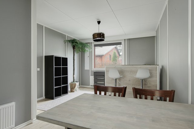 - Eteisen viereinen isompi huone jaettavissa kahdeksi makuuhuoneeksi (ollut aikaisemmin kahtena makuuhuoneena). Laajennuspuolella kaksi makuuhuonetta.