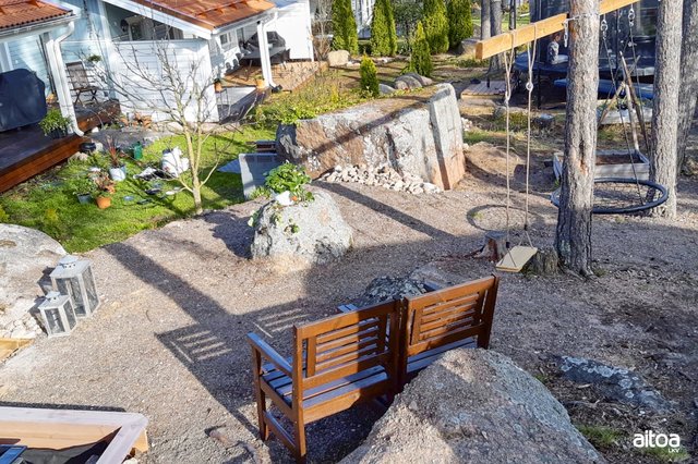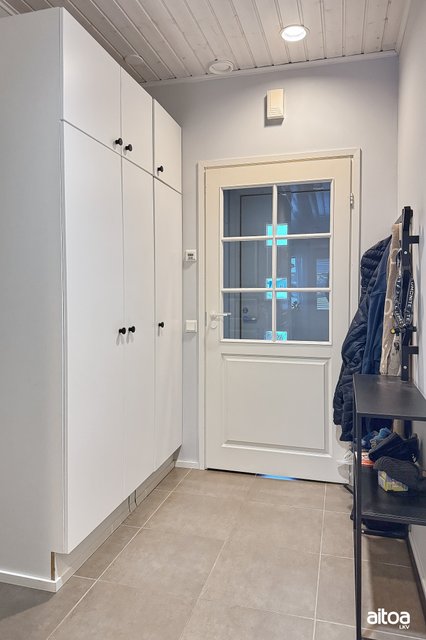 - Kaksi ulkovarastoa, vaatehuone ja kiinteät kaapistot.