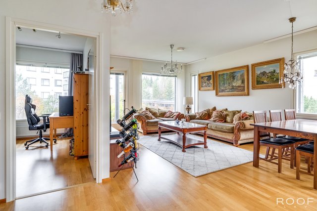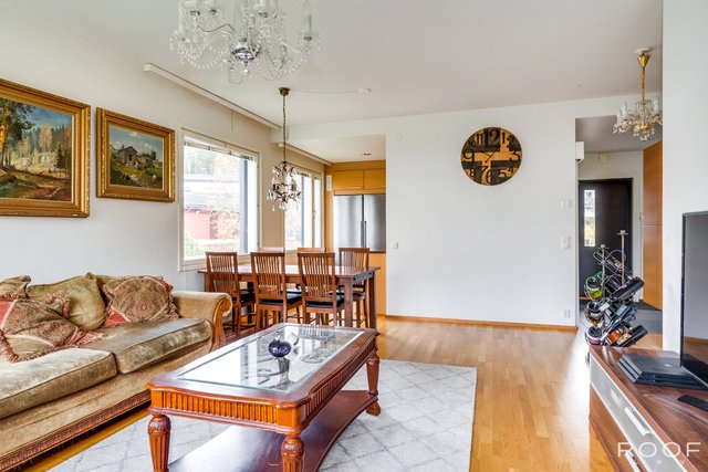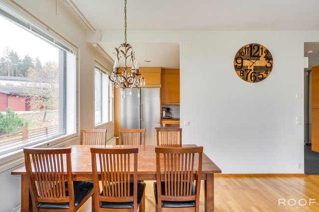 Nyt tarjolla rauhalliselta ja lapsiystävälliseltä asuinalueelta tilava rivitalohuoneisto. Tämä kaunis koti tarjoaa runsaiden neliöidensä ja varustuksiensa osalta vastinetta tämän päivän toiveisiin. Asunnon pohjaratkaisu tarjoaa avaruutta olohuoneen yhdistyessä toivotusti keittiöön. Olohuoneen ja keittiön yhteyteen saa mahtumaan isommankin sohvaryhmän ja ruokapöydän. Olohuoneesta kulku huoneiston länsi suuntaan avautuvalle pihaterassille, jossa nautit kesäisistä hetkistä. Asunnolla neljä makuuhuonetta, joista yksi sijaitsee olohuoneen vieressä ja kolme huoneiston toisessa kerroksessa.