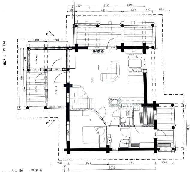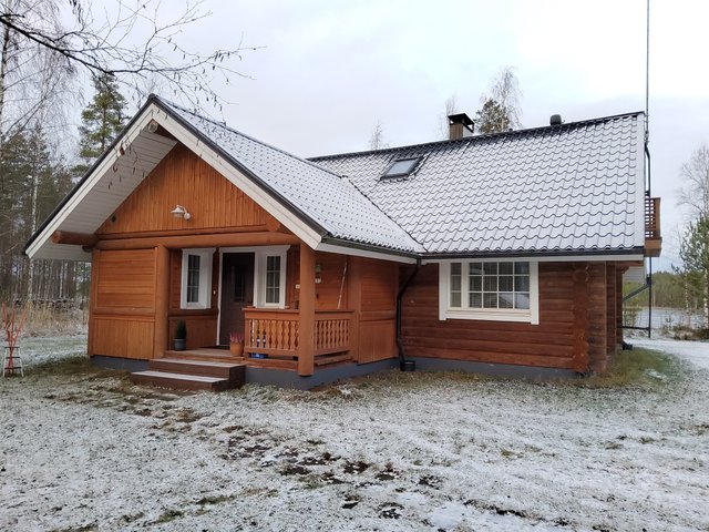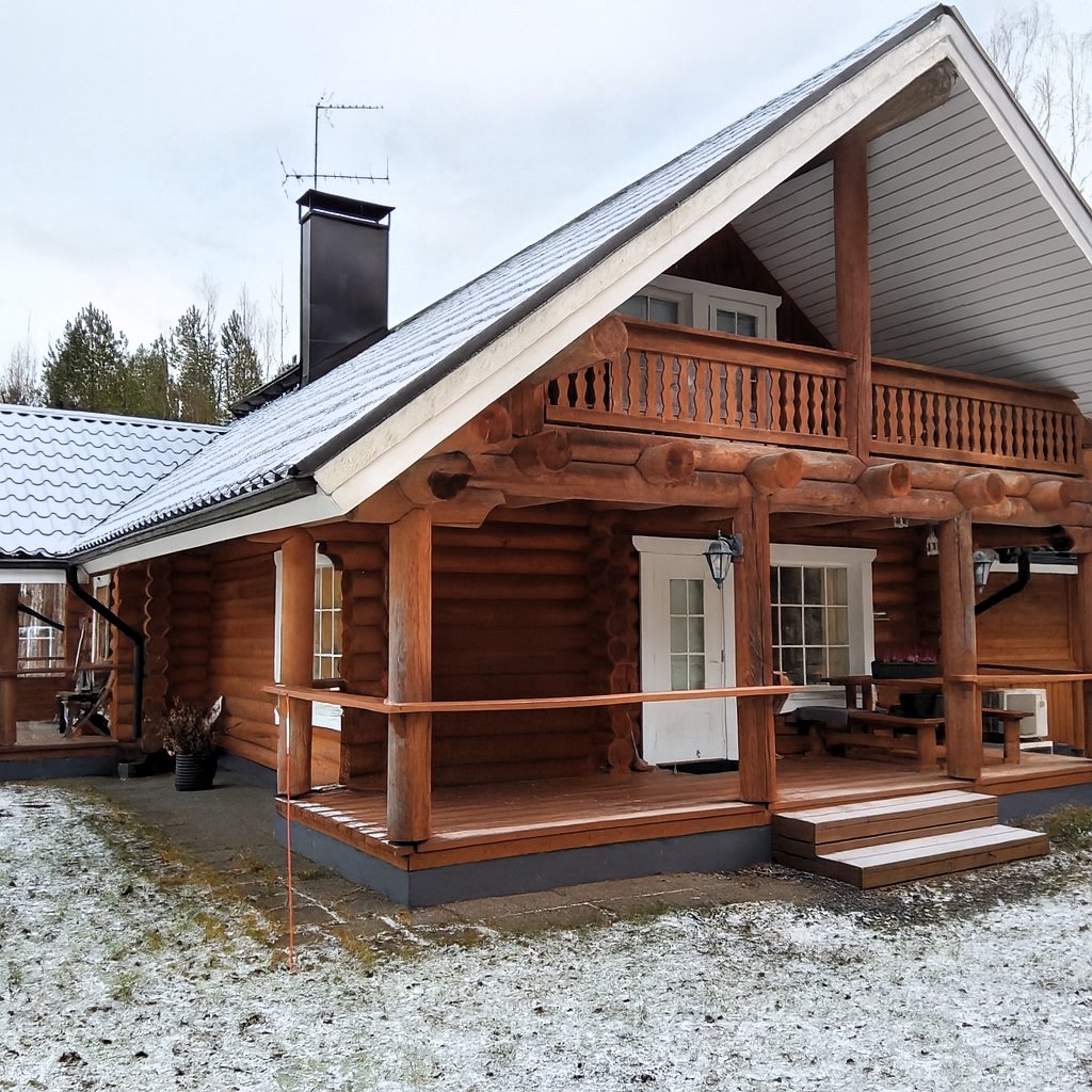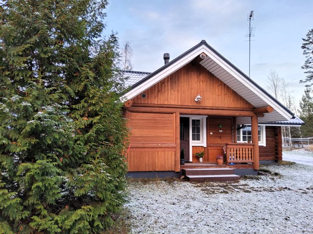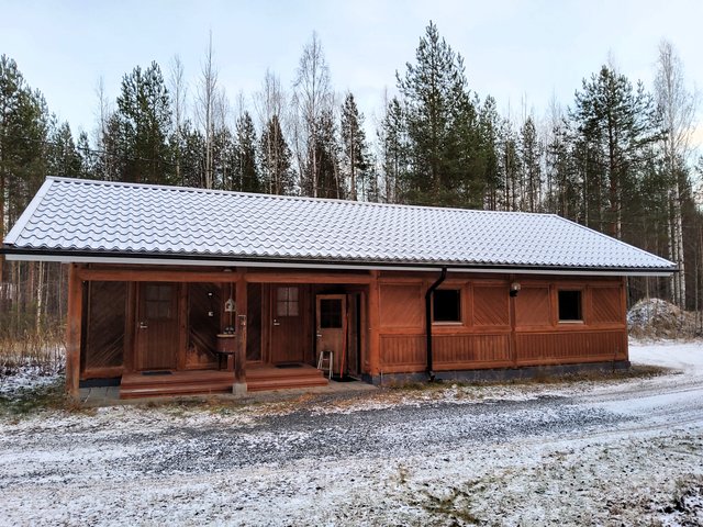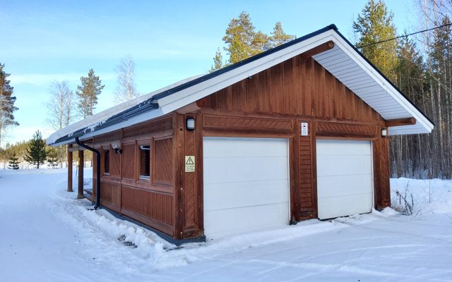 - Pyöröhirsinen (250mm) asuinrakennus, 120m². Talousrakennus, jossa 2x autotalli + 2x aittahuone. Varasto/jätekatos.