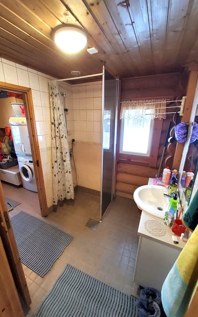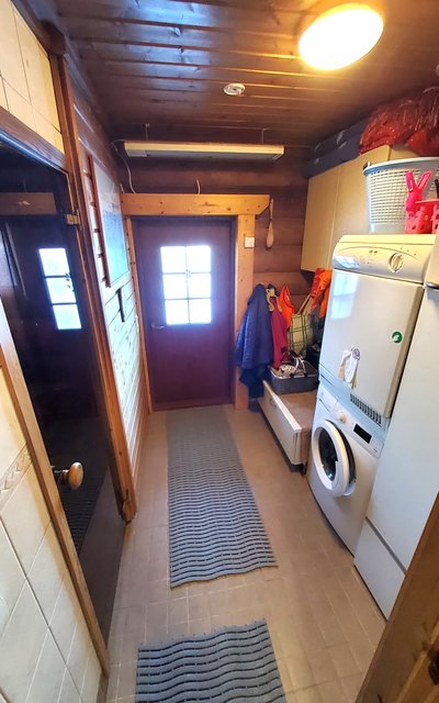 - Pesukoneliitäntä, lattialämmitys, pyykkikaapit, ja pöytätaso
