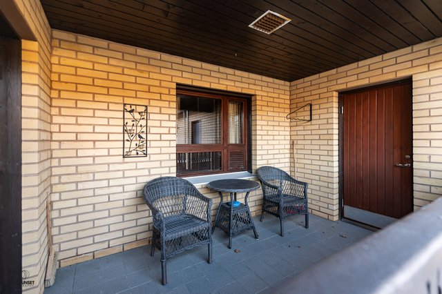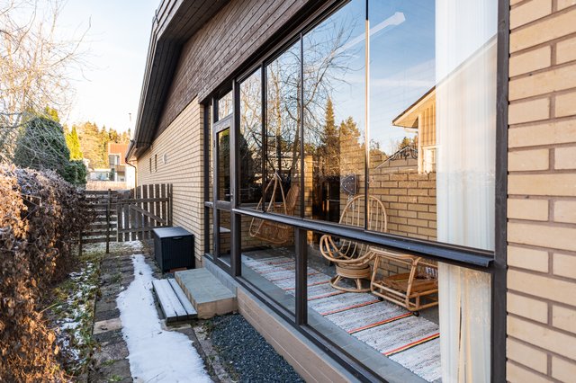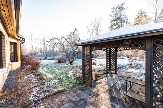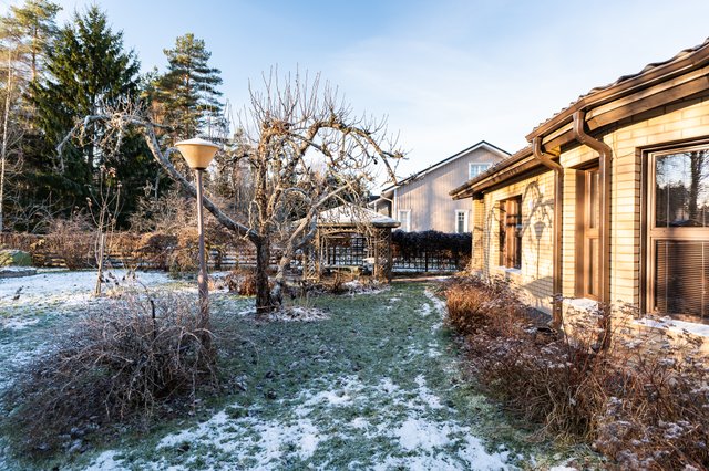 Puutarhamainen piha on ammattilaisten suunnittelema ja tarjoaa kauniit puitteet ulkoiluun ja vapaa-ajan viettoon. Lasitettu terassi on täydellinen paikka nauttia kesäilloista. Lisäksi tontilla on lämmin autotalli (kauko-ohjattavalla nosto-ovella) ja kaksi varastoa, jotka tarjoavat runsaasti säilytystilaa.