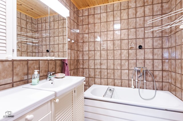 - Kylpyhuone on kauniisti remontoitu arkkitehdin suunnitelmien mukaan vuonna 2012