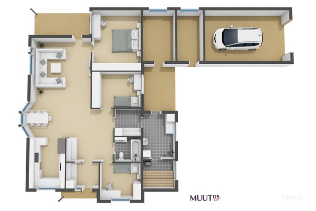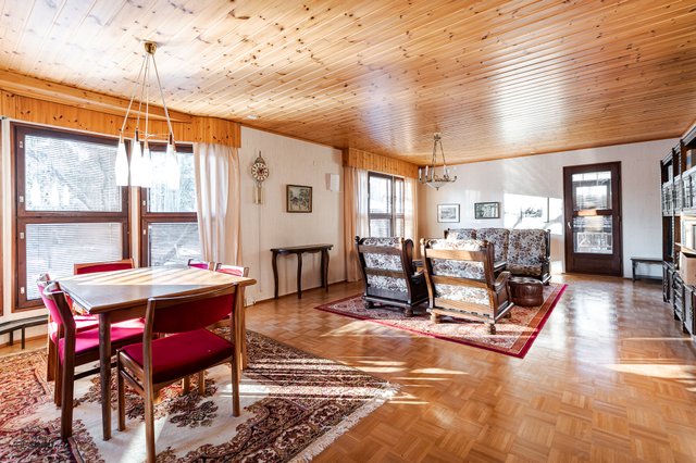 - Asuintilojen pinta-ala on noin 125,5 m2, jonka lisäksi talossa kaksi varastoa yhteensä 16 m2 ja autotalli 23 m2.