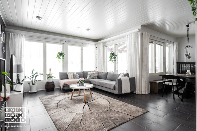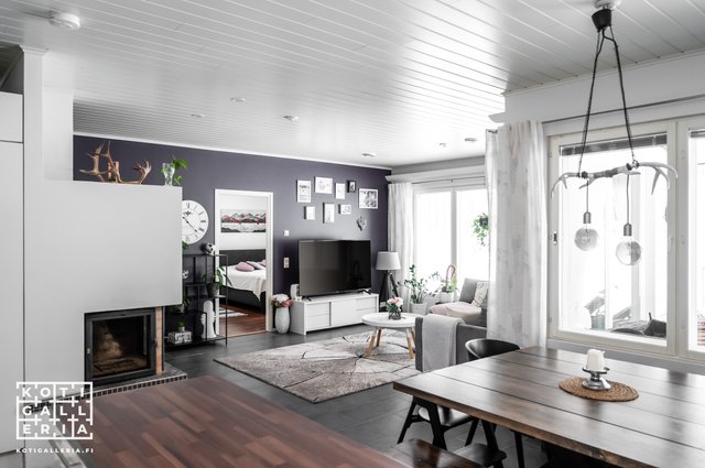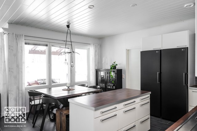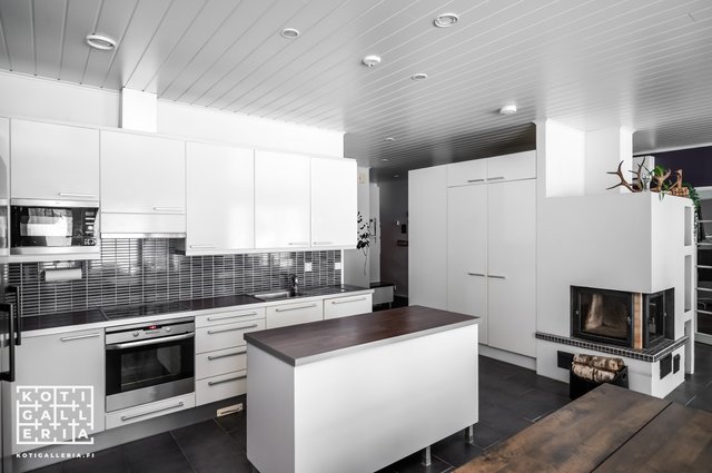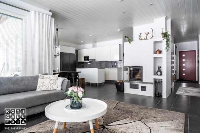 Tässä kauniissa 144 m² kodissa on tilaa isommallekin perheelle neljän makuuhuoneen ansiosta. Kodin sydämenä on varaava takka, jonka lämpö kerää kaikki yhteen viileinä iltoina. Keittiössä Puustellin laadukkaat kalusteet ja modernit kodinkoneet tekevät ruoanlaitosta nautinnon.