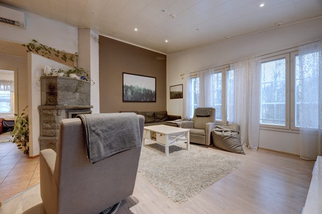 Talon sydän on avara olohuone, jossa on lämpöä varaava takka luomassa tunnelmaa ja tuomassa säästöä energiakuluihin kylminä talvi-iltoina. Keittiössä on kaikki modernit mukavuudet, ja neljä makuuhuonetta tarjoavat runsaasti tilaa perheelle tai vieraille. Koko talon kattava lattialämmitys, mikä tuo erinomaisen asumismukavuuden.