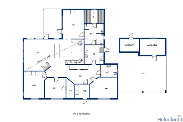 - Pinta-ala ei ole tarkistusmitattu ja todellinen pinta-ala voi olla suurempi tai pienempi, kuin ilmoitettu