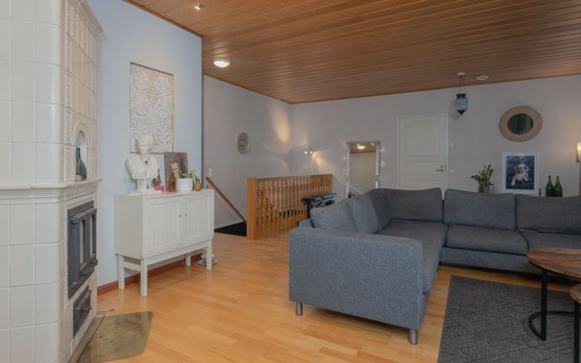 Kaksikerroksinen koti tarjoaa runsaasti tilaa ja monipuolisia mahdollisuuksia isommallekin perheelle.