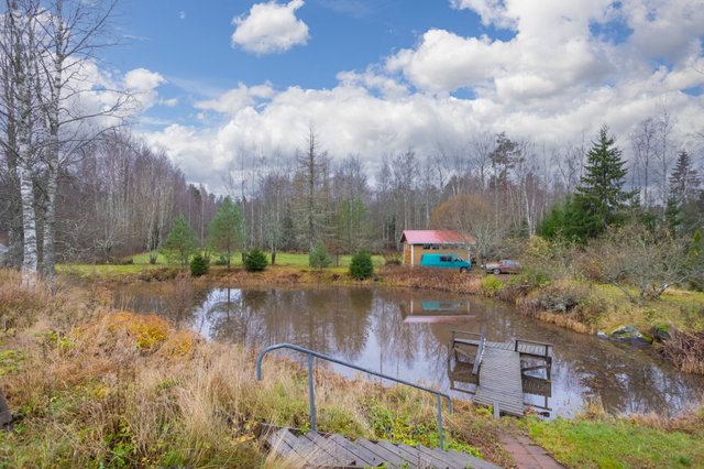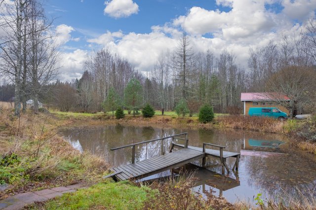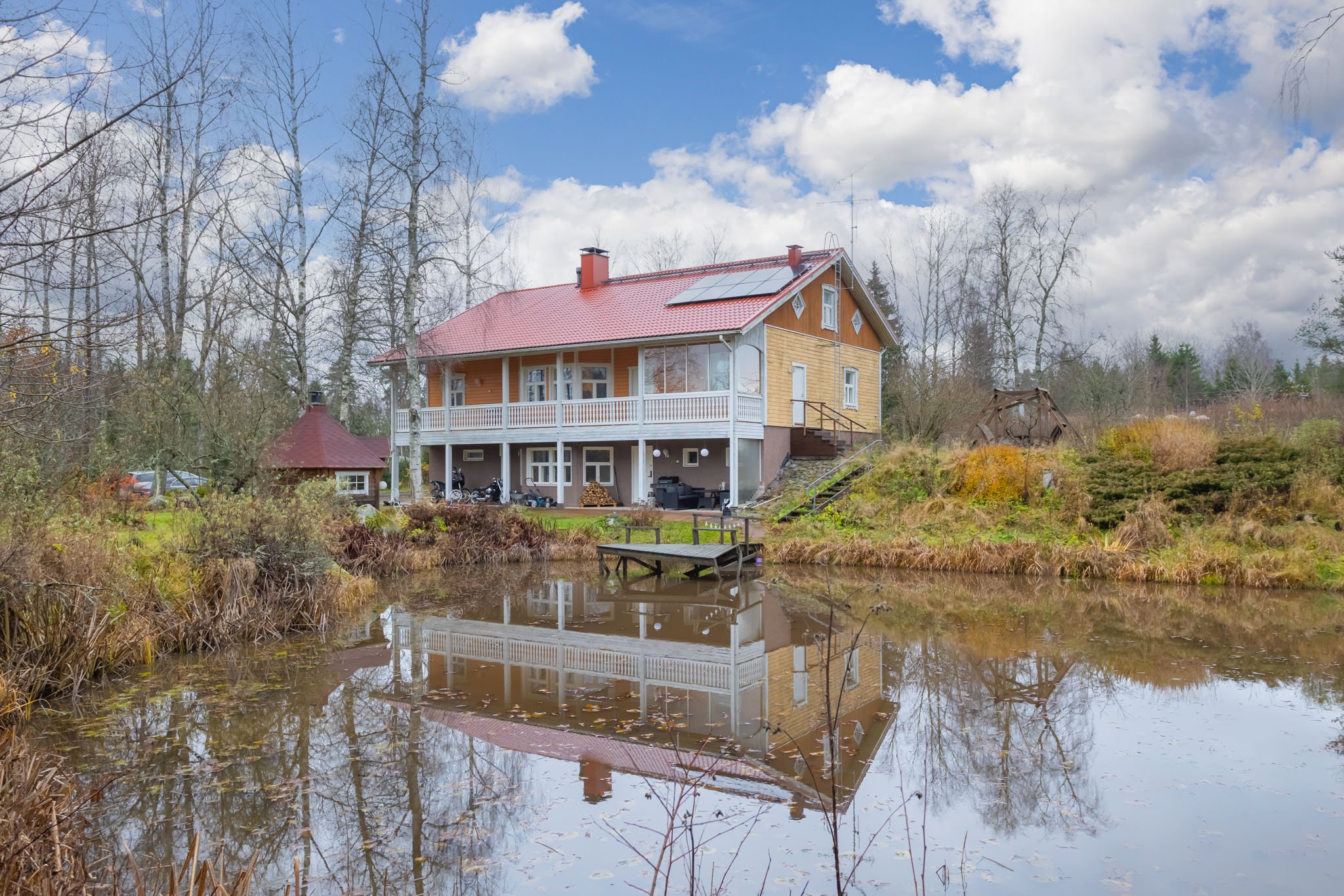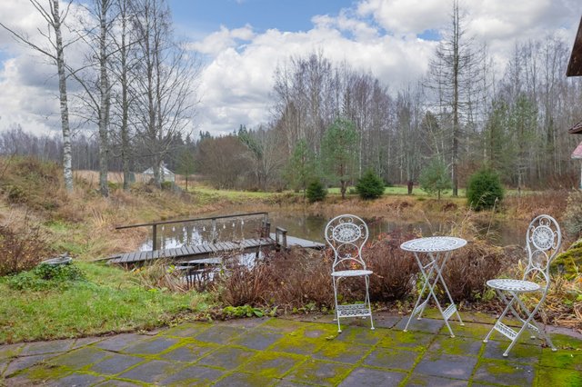 Pihapiiri on vehreä ja monipuolinen. Pihalla on läpivirtaava lampi sekä tunnelmallinen kota, jossa voi viettää iltaa ympäri vuoden. Lisäksi käytössä on tilava, noin 48,5 m² autotalli.
