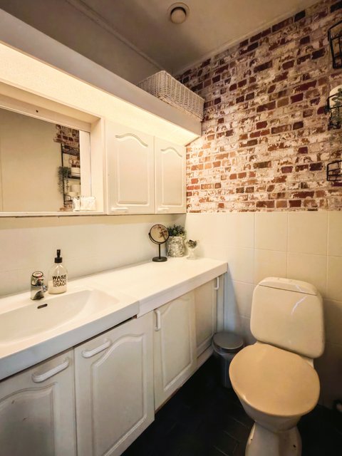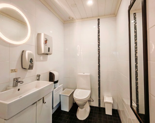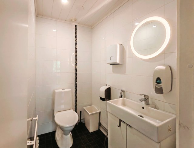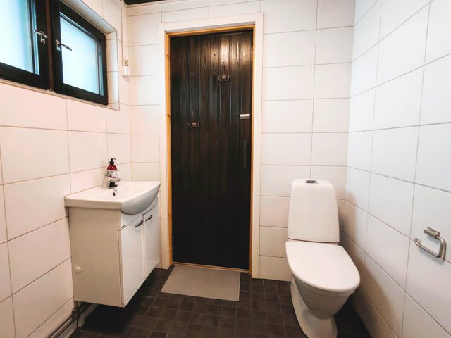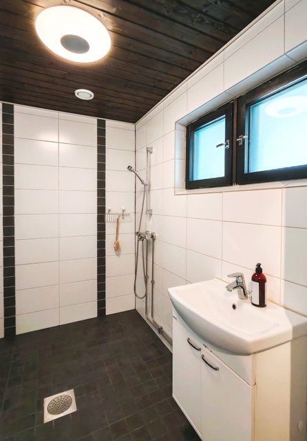- WC-istuin, suihku, lattialämmitys, valaisin bluetooth-kaiuttimella, pesuallas, ja allaskaappi