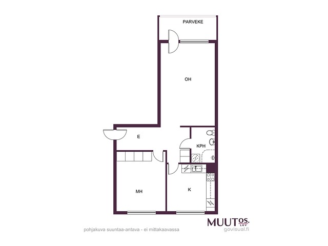 - Pinta-ala ei ole tarkistusmitattu. Pinta-ala saattaa poiketa olennaisestikin laskettavasta pinta-alasta. Todellinen pinta-ala voi siis olla esitteessä, yhtiöjärjestyksessä tai isännöitsijäntodistuksella mainittua suurempi tai pienempi. Hinta ei ole pinta-alaperusteinen. Yhtiöjärjestyksen mukainen huoneistoselitelmä: 2h+k