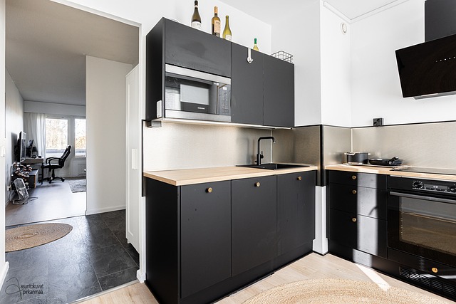 - Mikroaaltouuni, jääkaappipakastin, astianpesukone, liesi, ja liesituuletin