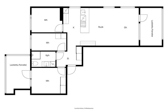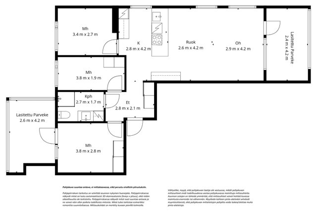 - Makuuhuoneen parvekkeen ilmansuunta länsi. Olohuoneen parvekkeen ilmansuunta itä.