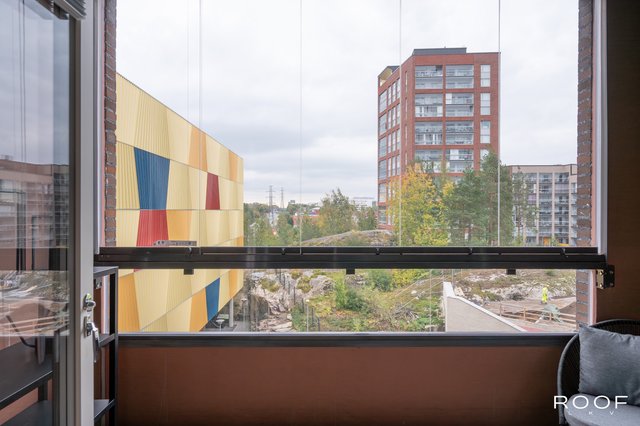 Asunnossa on kolme makuuhuonetta, joista suurimman yhteydessä on oma lasitettu parveke - täydellinen paikka rauhallisiin hetkiin. Tyylikäs kylpyhuone on käytännöllinen ja soveltuu hyvin lapsiperheille. Ikkunoita on moneen ilmansuuntaan, mikä tekee kodista valoisan ja kutsuvan joka hetki.