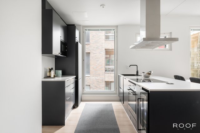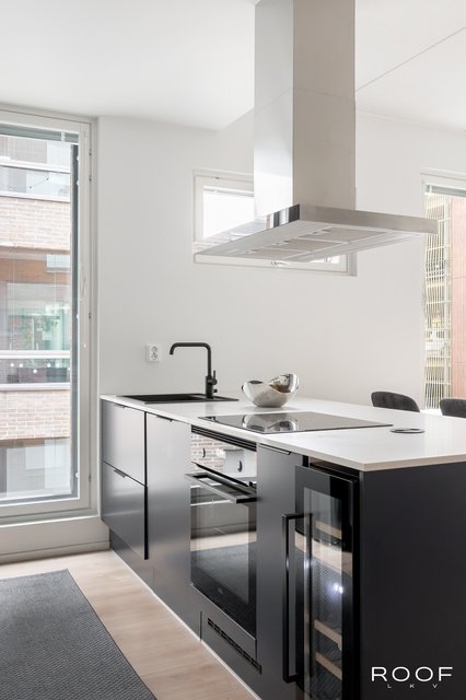 - Varustus: Jääkaappi/pakastin, integroitu induktioliesi, integroitu erillisuuni, liesituuletin (hormi), integroitu mikroaaltouuni, integroitu astianpesukone, viinikaappi. Seinät: Maalattu. Työtasot: Kvartsi. Lattia: Laminaatti.