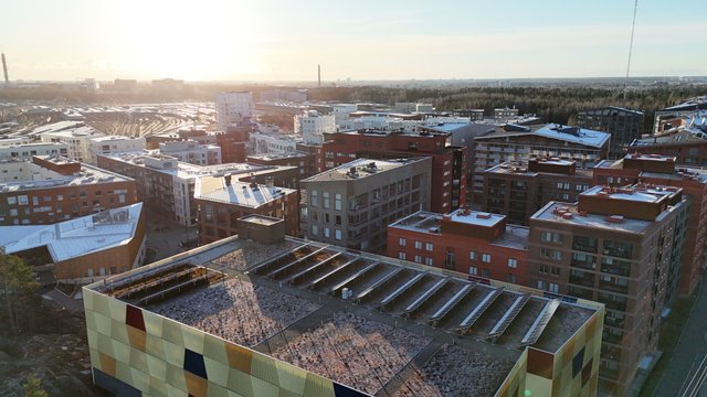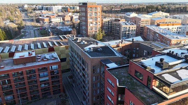 Taloyhtiö on hyvin hoidettu ja vakavarainen, ja pihapiiri on siisti. Alueen palvelut ovat poikkeuksellisen lähellä - Triplaan kävelee muutamassa minuutissa, samoin juna-asemalle, josta pääsee sujuvasti kaikkialle Helsinkiin ja ympäri Suomea.