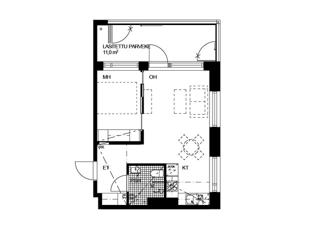 Asunnon oma lasitettu parveke lisää viihtyisyyttä ja tarjoaa rauhallisen paikan nauttia vehreistä näkymistä lähes ympäri vuoden.