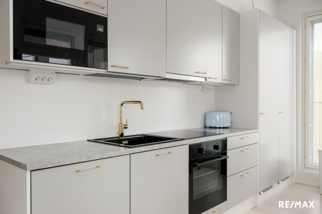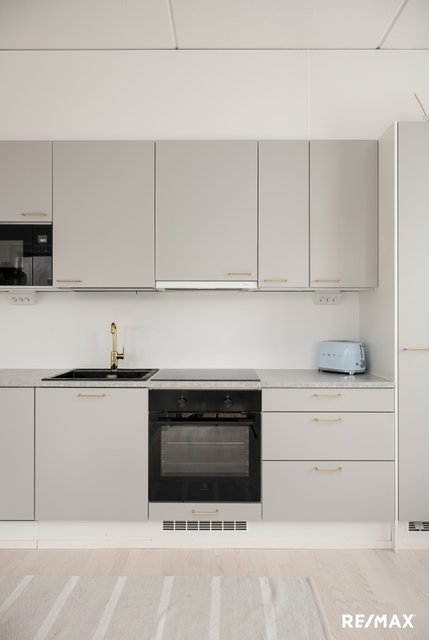 Keittiö on suunniteltu arjen nautintoja varten: laadukkaat materiaalit, runsaasti säilytystilaa ja tilaa yhteisille hetkille tekevät siitä kodin sydämen.