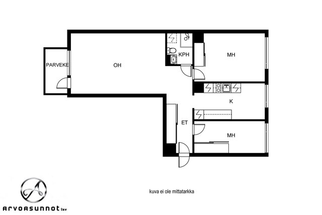 - Ei tarkistusmitattu. Pinta-alat saattavat tämän ikäisissä kohteissa (yhtiö rekisteröity ennen 01.01.1992) poiketa olennaisestikin asuinrakennusten nykyisten mittaustapojen ja standardien (SFS 5139) mukaan laskettavasta asuintilojen pinta-alasta. Pinta-ala voi siis olla edellä mainittua pienempi tai suurempi.