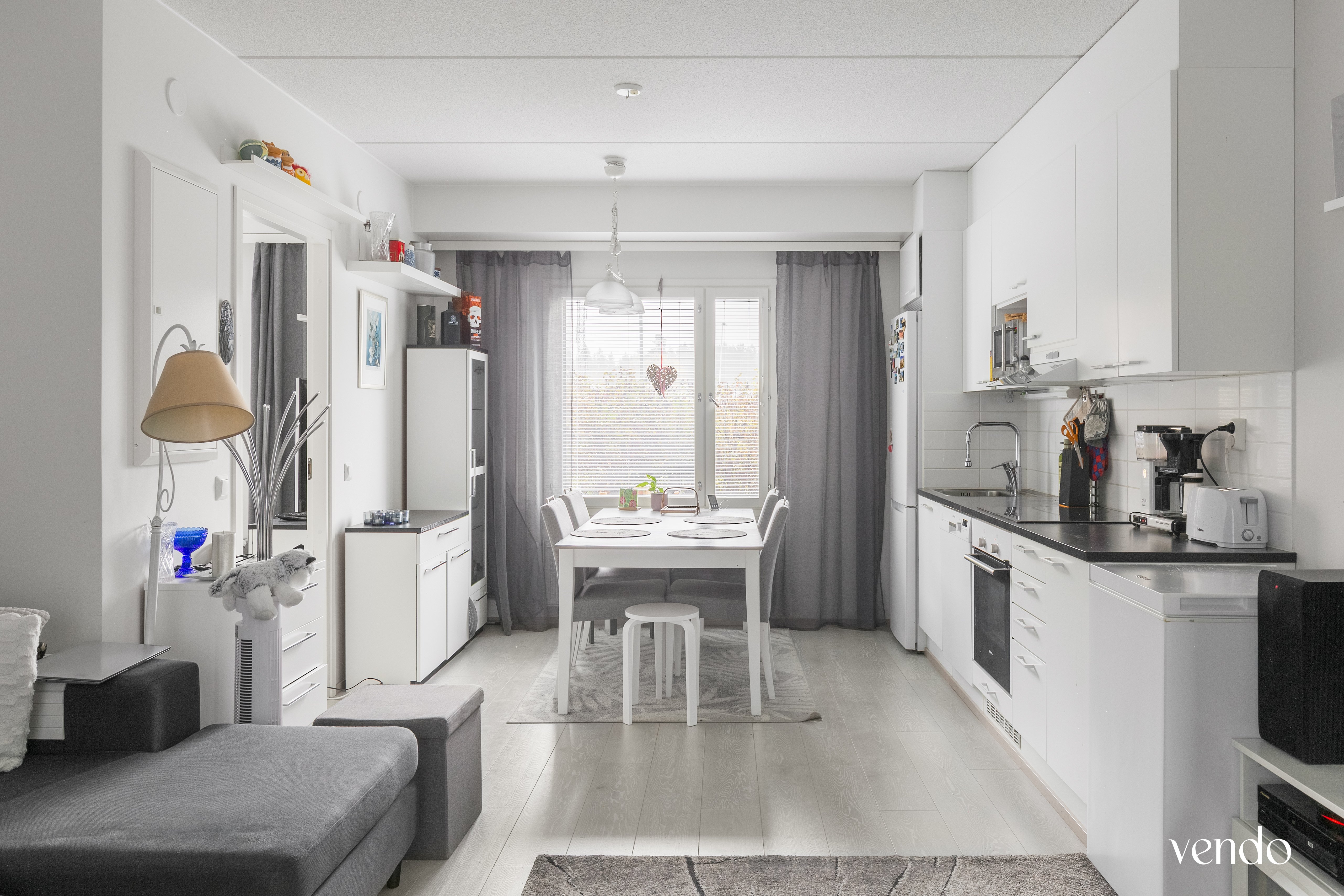 Tästä kodista löytyy avara olohuone ja käytännöllinen avokeittiö, jossa on kaikki tarvittavat kodinkoneet sekä kaappi- ja laskutilaa. Kodista löytyy lisäksi makuuhuone, moderni kylpyhuone omalla saunalla sekä suojaisa etupiha. Kodin tunnelmaa täydentävät vaaleat pinnat sekä lattiat jotka tekevät tiloista ajattomat ja helposti sisustettavat.
