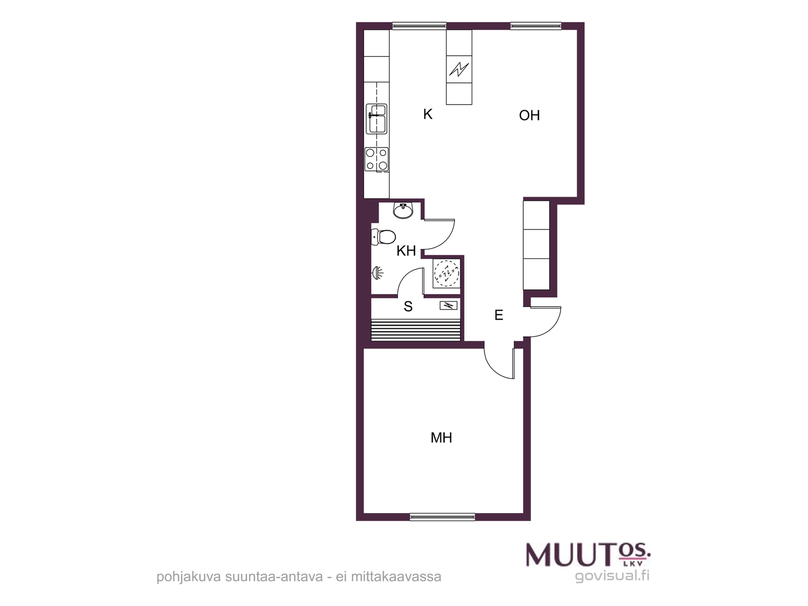 - Edellä mainittu pinta-ala saattaa tämän ikäisessä kohteessa poiketa olennaisestikin huoneiston nykyisen ja rakentamisaikaisen mittaustapojen ja standardien mukaan laskettavasta pinta-alasta. Huoneiston todellinen pinta-ala voi olla yhtiöjärjestyksessä, isännöitsijäntodistuksessa ja esitteessä mainittua pienempi tai suurempi. Hinta ei ole pinta-alaperusteinen. Yhtiöjärjestyksen mukainen huoneistoselitelmä: 2h+k+alk.
