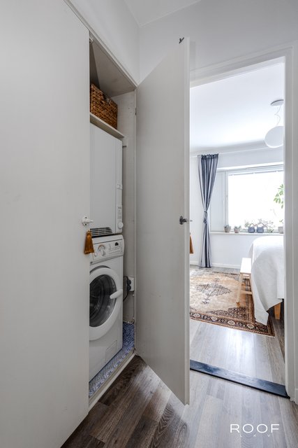 - Pesukone ja kuivausrumpu kylpyhuonetta vastapäätä.