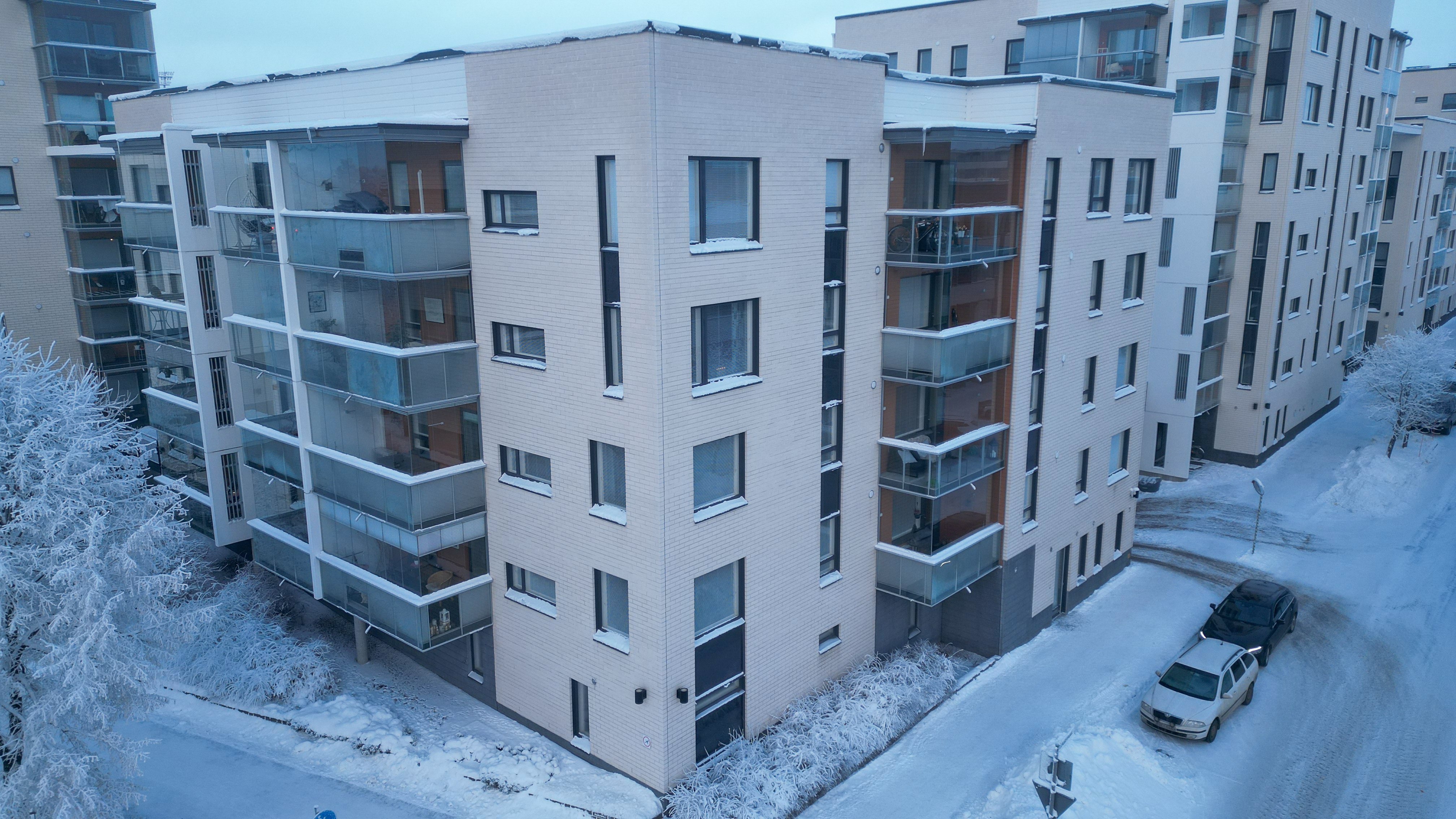Suositussa Kiela korttelissa myytävänä valmiiksi vuokrattu kaksio, jossa lasitettu parveke.