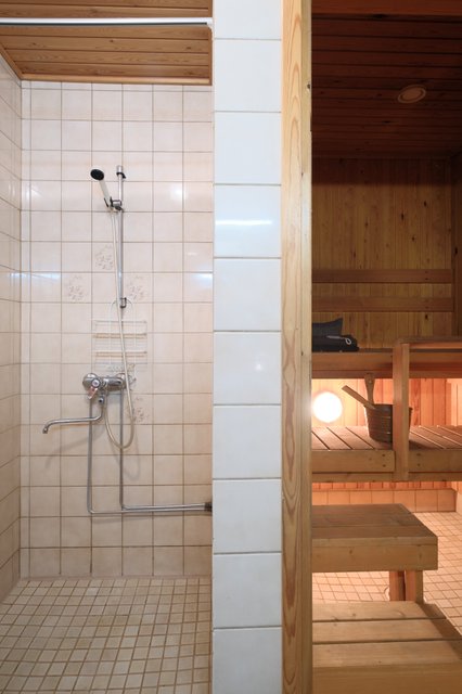 Saunassa voit nauttia rentouttavista löylyistä ja ihailla ikkunasta avautuvaa metsämaisemaa. Kylpyhuoneessa on tilaa suihkunurkkaukselle ja pyykkihuollolle, ja se on varustettu lattialämmityksellä. Lisäksi talossa on vaatehuone, jossa on varaus wc-tilalle.