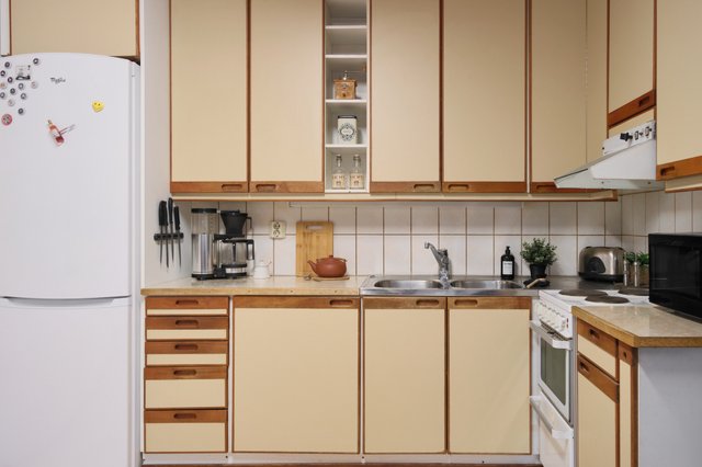 - Jääkaappipakastin, liesi (1 levy halki), liesituuletin, ja astianpesukoneen liitäntä