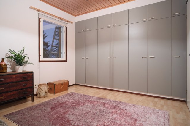 - Päämakuuhuoneessa on runsaasti kaappitilaa - koko seinän leveydeltä. Pienempi makuuhuone toimii joko työ- tai lastenhuoneena.