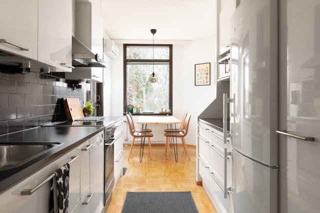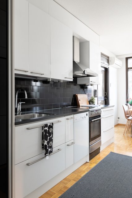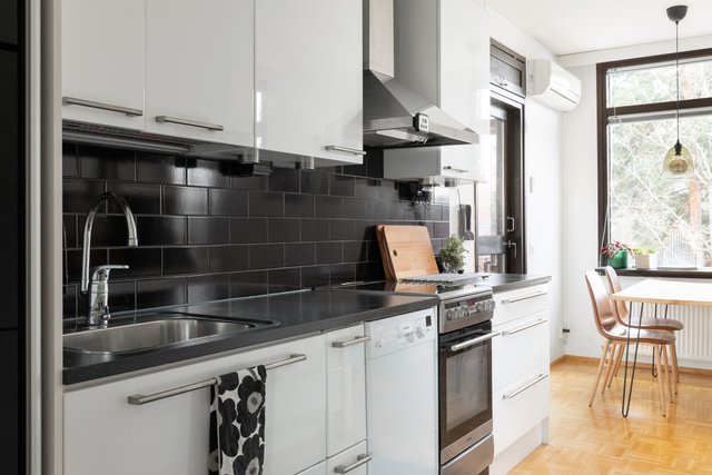 - Jääkaappipakastin, astianpesukone, liesituuletin, liesi, ja uuni