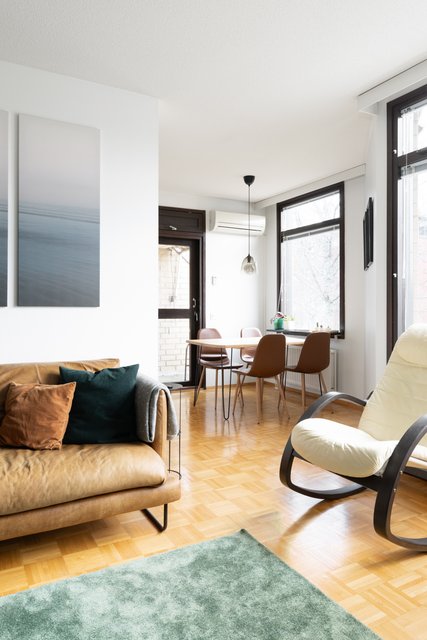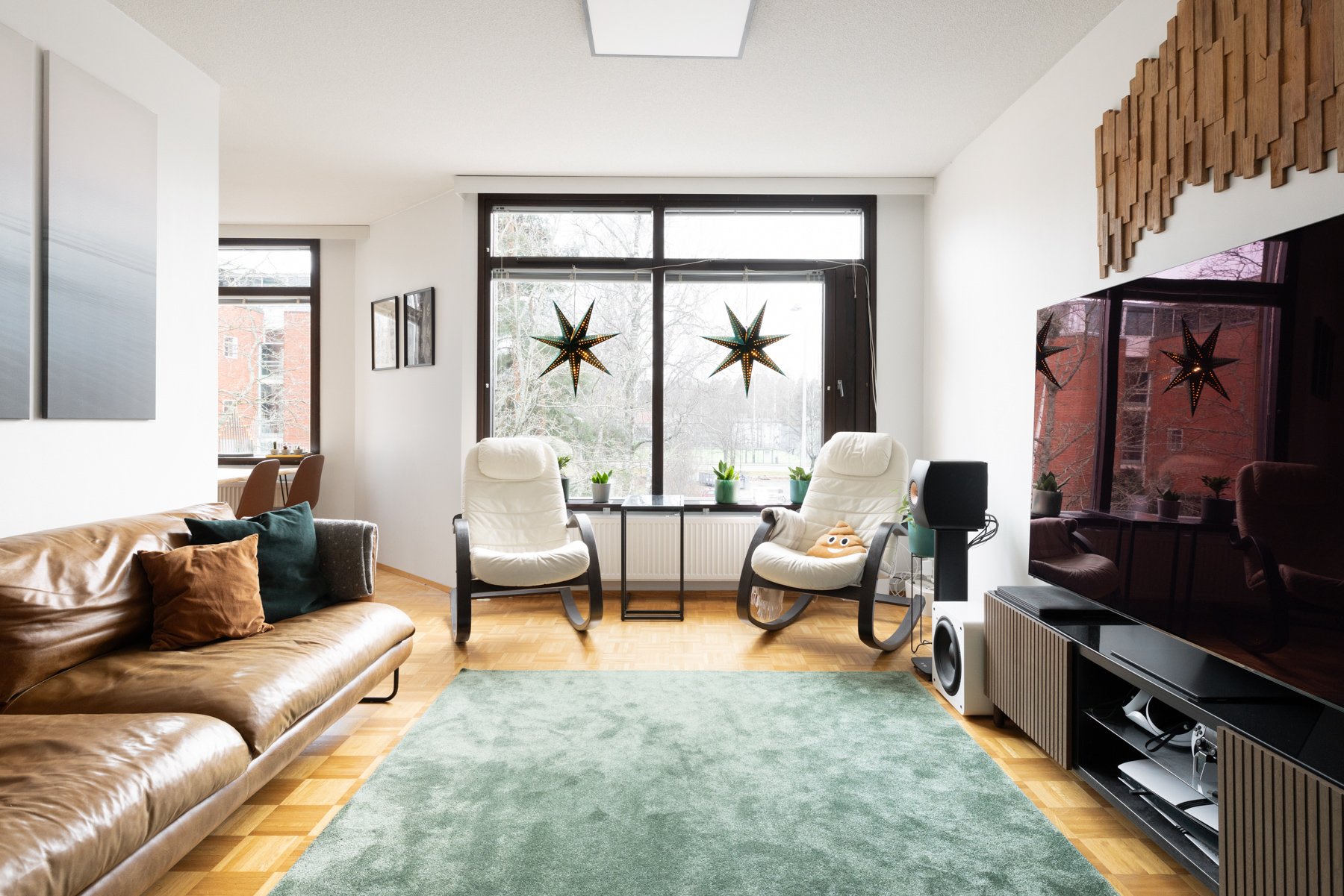 Luonnonvalo tulvii tämän kaksion suurista ikkunoista ja kodissa on kauttaaltaan lämmin, valoisa tunnelma. Toimiva pohjaratkaisu tekee arjesta sujuvaa ja tilankäytöstä poikkeuksellisen järkevää. Keittiössä on runsaasti säilytys- ja laskutilaa myös vaativamman kokin tarpeisiin ja ruokailutila asettuu luontevasti keittiön yhteyteen. Olohuone on avara ja helposti kalustettavissa. Reilun kokoinen makuuhuone tarjoaa rauhallisen levähdyspaikan lisäksi tilaa myös etätyöpisteelle. Kylpyhuoneessa on hyvin tilaa pyykkihuollolle ja oma sauna viimeistelee kokonaisuuden.