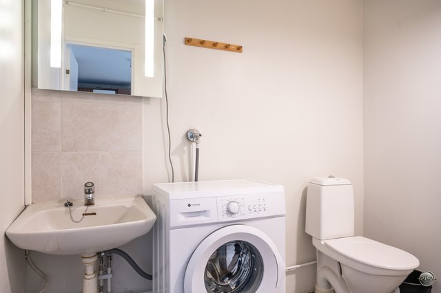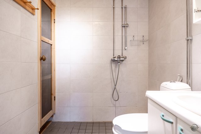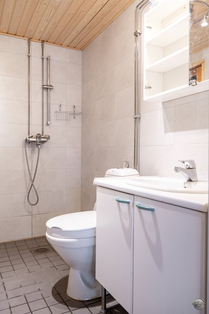 - WC-istuin, suihku, lattialämmitys, peilikaappi, ja allaskaappi