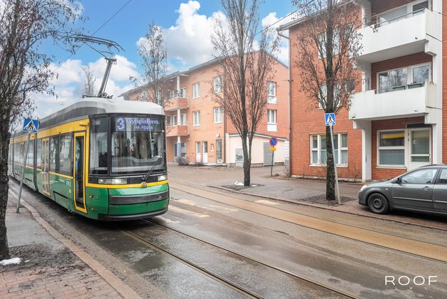 Sijainti on loistava ja kulkuyhteydet todella hyvät: raitiovaunu kulkee aivan vierestä ja pysäkki on lyhyen kävelymatkan päässä. Läheltä löytyvät upeat ulkoilureitit (mm. keskuspuisto ja Seurasaari), päiväkodit, koulut ja monipuoliset palvelut. Pikku Huopalahden alue on aktiivisesti kehittyvä. Tämä koti sopii sinulle, joka arvostat laatua, toimivuutta ja hyviä kulkuyhteyksiä.Perustiedot