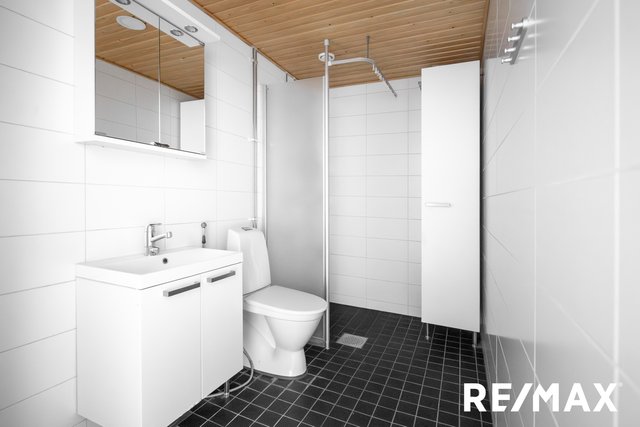 - Lattialämmitys, peilikaappi, pesukoneliitäntä, suihku, suihkuseinä, ja wc-istuin