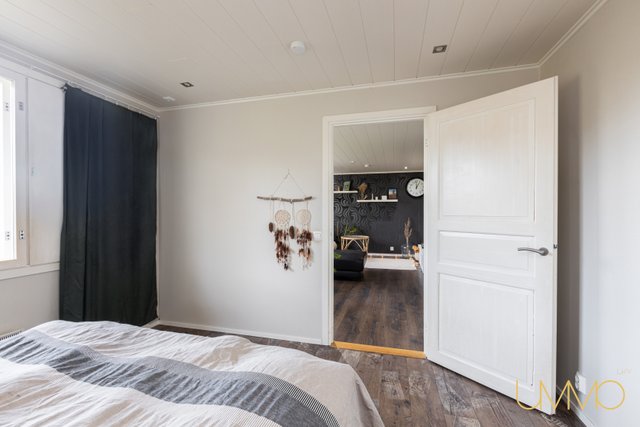 - Kolme hyvän kokoista makuuhuonetta, jotka kaikki sijaitsevat omassa rauhassaan hieman eripuolilla taloa. Kahdessa makuuhuoneessa vaatehuone.