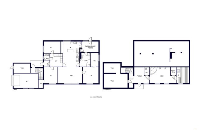 3 mh + tupakeittiö + oh + th/ph/baari + 2 vh + 2 wc + 2 kph + s + autotalli + varastotilaa