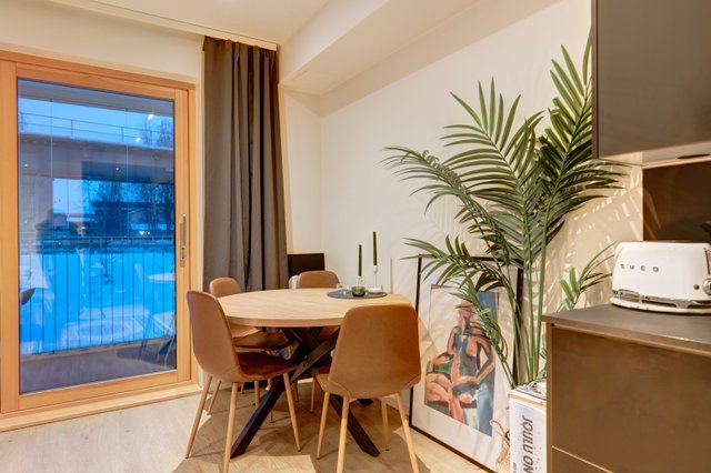 Tämä valoisa yksiö Rovaniemen keskustassa tarjoaa modernia ja todella tyylikästä asumista erinomaisella sijainnilla. Vuonna 2021 valmistunut Asunto Oy Willa Koskenkuiske sijaitsee Kemijoen rannalla, mikä tuo luonnonläheisyyttä kaupunkiasumiseen.
