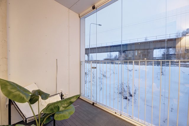 Asunnon lasitettu eteläparveke tarjoaa mukavan paikan rentoutua ja nauttia auringonpaisteesta. Kompaktissa 24,5 neliön kodissa on tehokas pohjaratkaisu, jossa moderni keittiö on varustettu erillisellä uunilla, induktioliedellä ja jääkaappipakastimella.