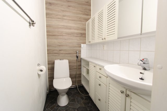 - Wc-istuin, bidesuihku, allas, kaapistot.