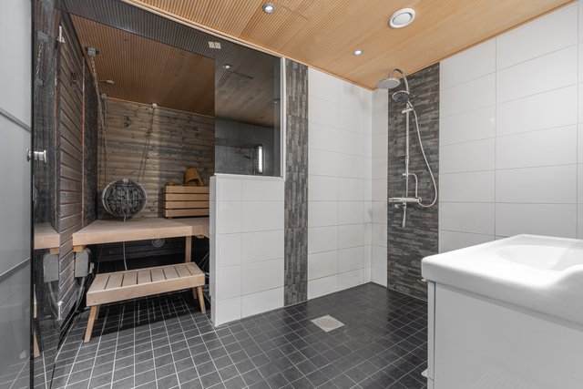 - kylpyhuone ja sauna uusittu 2012 kokonaan Liukuovella erotettu pyykinpesukoneen, siivouskaapin ja lämminvesivaraajan paikka kylpyhuoneessa.